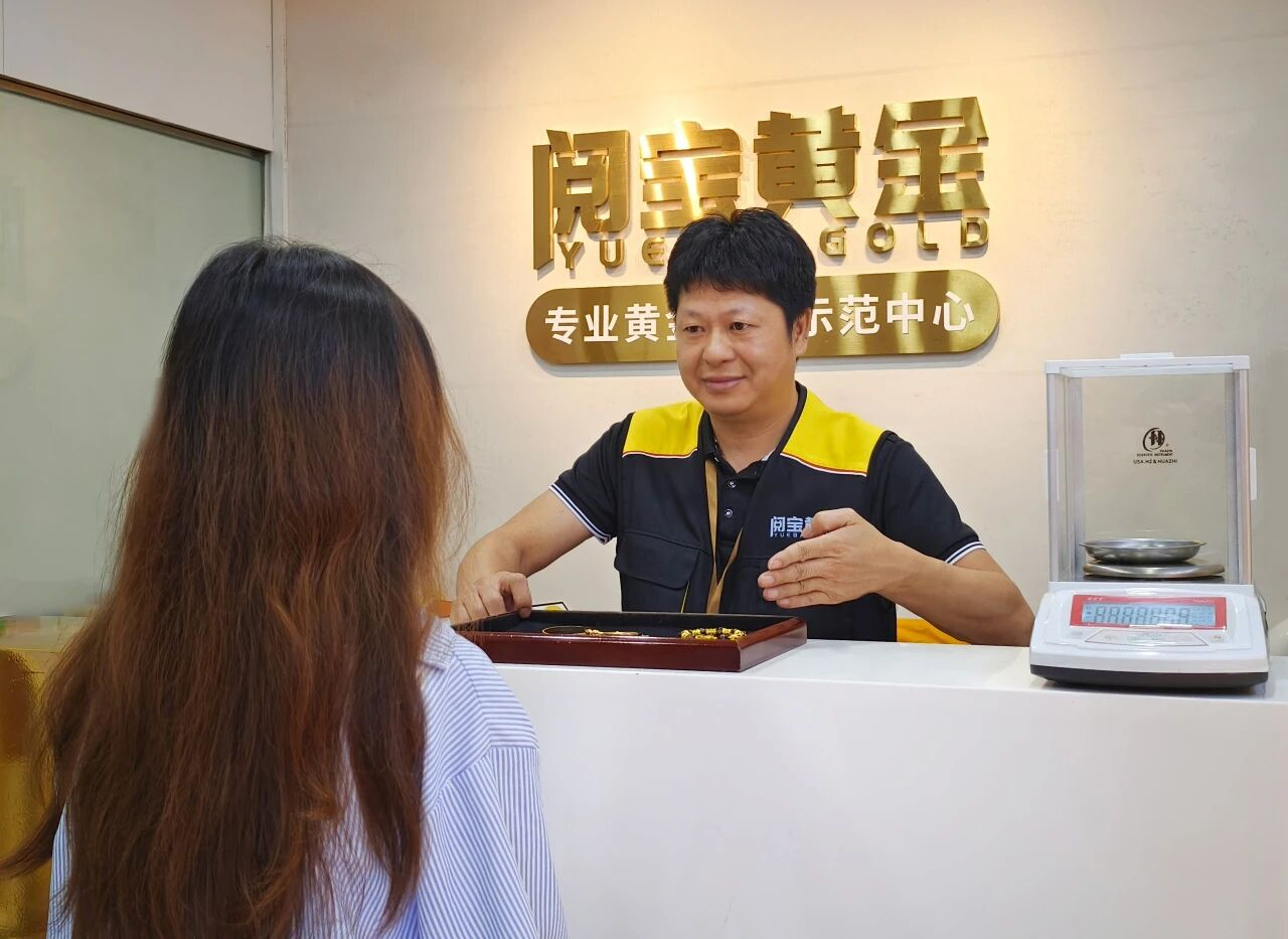阅宝黄金配备国家级光谱仪(检测精度0.01%)与国家计量院检定电子秤,检测时店员当场展示纯度数值,称重过程全程让用户参与。中国黄金协会《黄金回收用户体验白皮书》显示,78%的好评用户会强调”店员当场用仪器测纯度,数值能看到”——阅宝的设备透明直接回应了这一核心诉求。